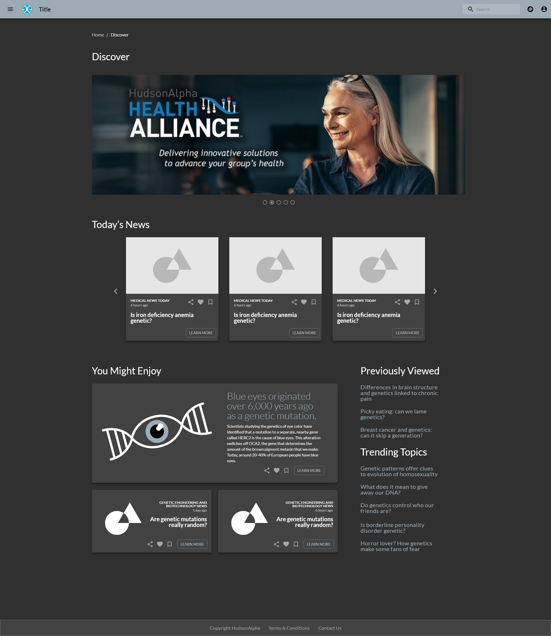 Genome Gateway is a genomic health application that I worked on during my internship with HudsonAlpha Institute for Biotechnology and continued contract work for after the internship completed. I worked closely with the software development team using the Material UI (MUI) design tool. I was primarily responsible for the color scheme and basic design styles for light mode and dark mode as well as icon design within the MUI parameters.