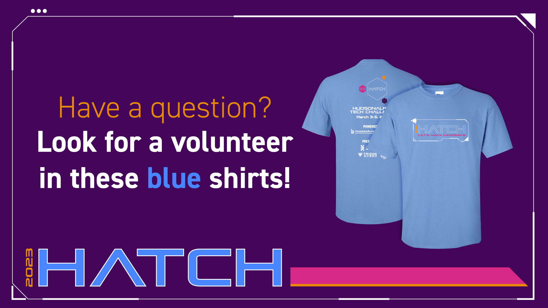 HudsonAlpha Tech Challenge or HATCH is an annual hackathon event hosted by HudsonAlpha.